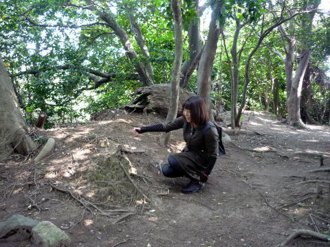 篠島小学校の東側にある小山が篠島城です。墓地から登っていきます。