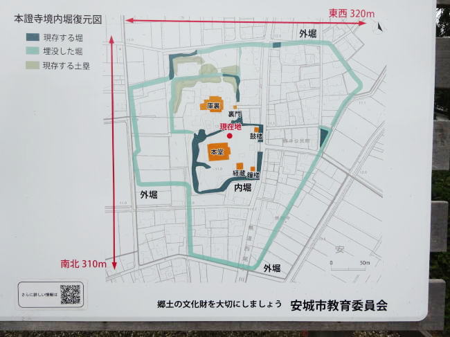 安城市教育委員会による、本證寺境内の堀の復元図。