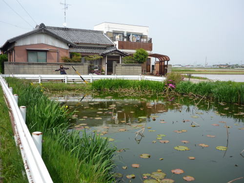 かつての本證寺は境内と周辺に二重の堀がありました。これは境内に残る水堀(内堀)。良好に残っています。