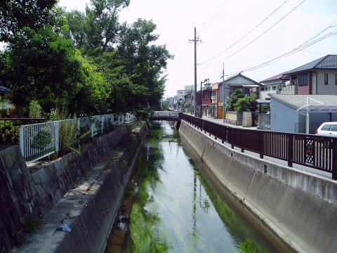 黒田小学校の北側を流れる川は、かつての堀跡といわれています。