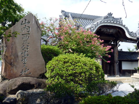 黒田小学校の近くにある法蓮寺は、山内家の菩提寺で、一豊の父・盛豊と兄・十郎のお墓があります。