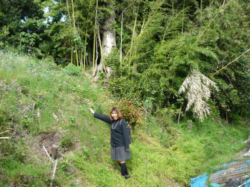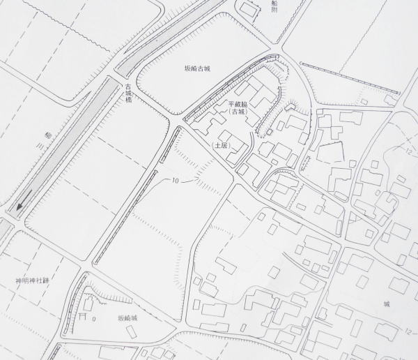 また坂崎字平蔵脇の住宅地の中に坂崎古城のものと伝わる土塁が残っています。高いもので2m程のものもあり、見応えがありました。