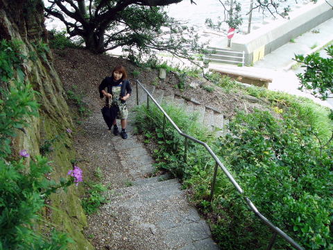 東、南、西の三方を海で囲まれた羽豆崎城は、崖を登るにもかなり険しい崖なので、甲冑を着ていたらほとんど不可能に近かったと思います。