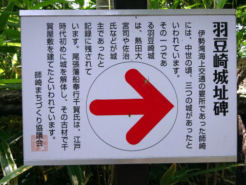 城内にある羽豆崎城の看板。近くの千賀屋敷の事についても書かれています。