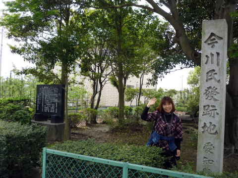 西尾市立西尾中学校の南に今川氏発祥の地の石碑があります。
